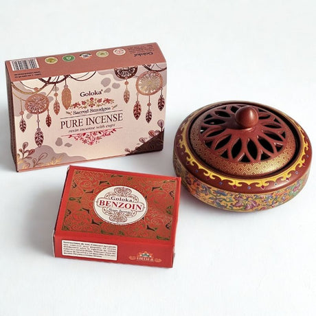 Los humos producidos por las copitas de resinas aromáticas liberan potentes aromas que se extenderán lentamente por la habitación de tu preferencia, limpiando las energías negativas y ayudando con la relajación, concentración y el equilibrio espiritual.