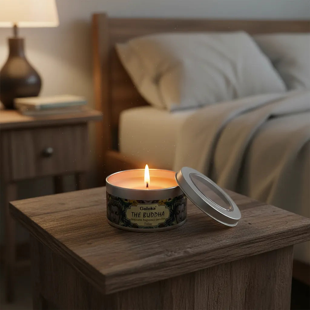 La Vela Aromática Goloka Budda en tarro envuelve el ambiente con una fragancia mística y cálida que invita a la calma, la armonía y la elevación espiritual. Al encenderla, transforma el espacio en un refugio de serenidad, ideal para momentos de meditación, introspección y conexión interior.