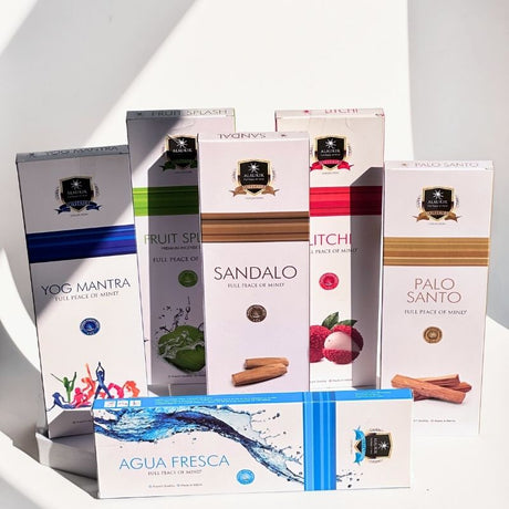 Variedad de aromas: desde fragancias frutales como coco, piña y melón, hasta notas florales de rosa, jazmín y caléndula, además de mezclas frescas como “Aquafresh”, ideales para meditación, yoga y rituales energéticos.