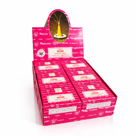 El incienso en cono es una forma compacta y concentrada de incienso, hecho de una mezcla de ingredientes aromáticos naturales como hierbas, resinas, aceites esenciales y madera en polvo, que se combinan y moldean en una forma cónica. A diferencia del incienso en varilla, el incienso en cono no tiene un núcleo de madera, lo que permite que toda la superficie del cono se queme y libere su fragancia.