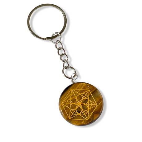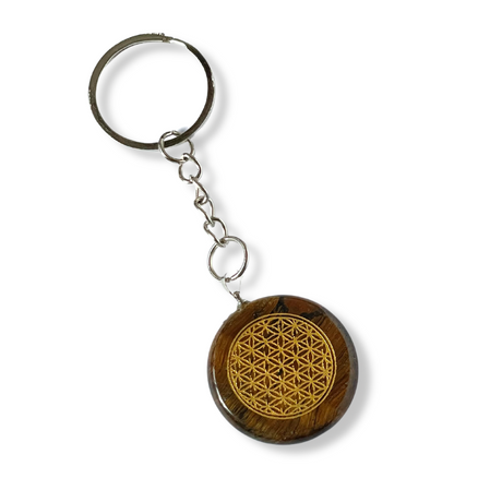 Llavero Piedra Ojo de Tigre - Flor de la Vida