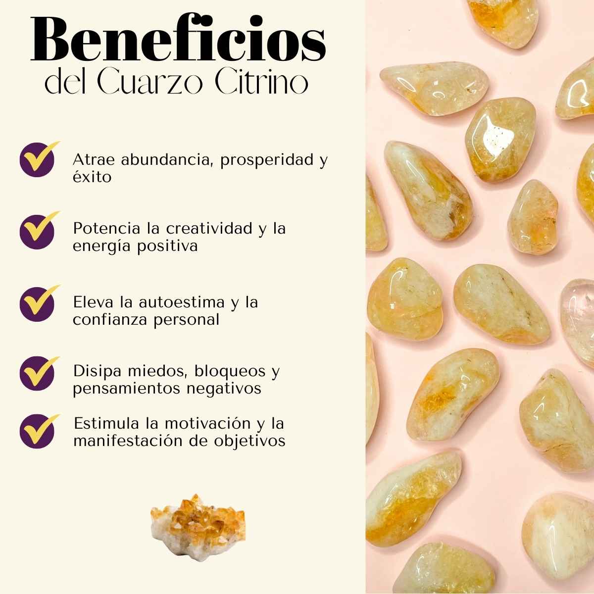 El citrino es conocido como la piedra de la abundancia y el éxito. Favorece la autoestima, impulsa la motivación y ayuda a liberar bloqueos emocionales que impiden avanzar. También protege contra la negatividad, recarga el cuerpo de energía positiva y fortalece la confianza personal, convirtiéndola en una gema ideal para quienes desean activar su poder interior y atraer prosperidad a su vida.