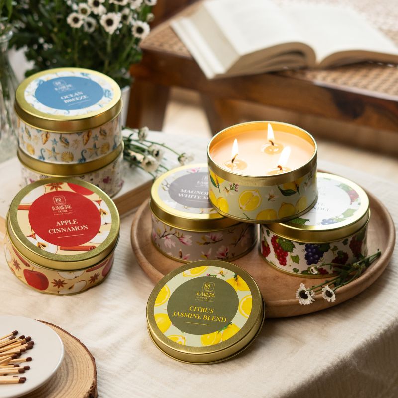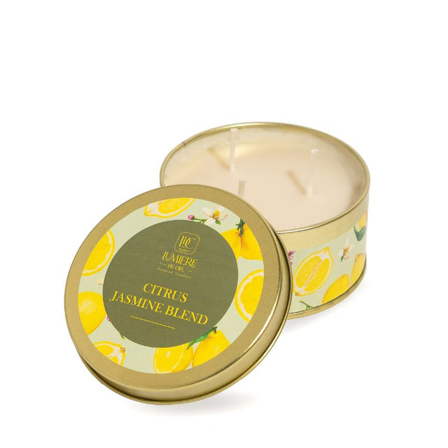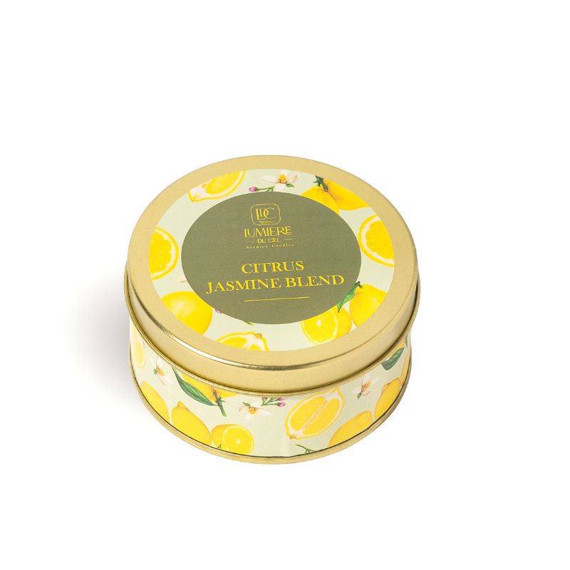 La Vela Aromática Mezcla Jazmín Cítrico de Lumiere du Ciel 🌸🍋 es una experiencia sensorial de lujo, creada con la pureza de la cera de soya y la opulencia de la cera de palma. Presentada en un elegante recipiente de metal, esta vela premium aporta distinción y calidez a tus espacios, envolviéndolos con un aroma luminoso y refrescante que eleva los sentidos y transmite bienestar.