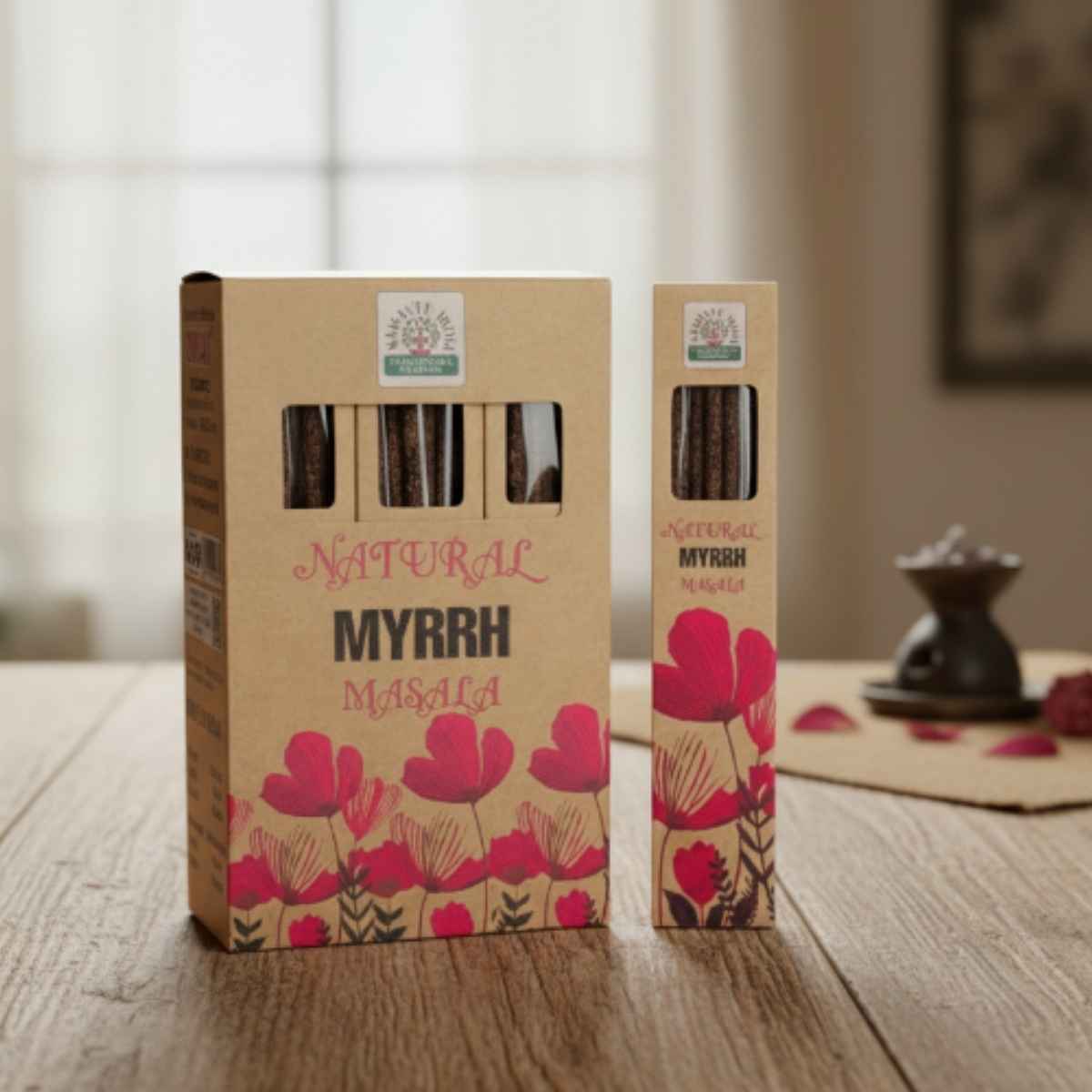 Incienso Orgánico Mirra, una fragancia espiritual y purificadora que limpia, protege y eleva tus espacios, guiando la mente hacia la calma y el alma hacia la introspección.