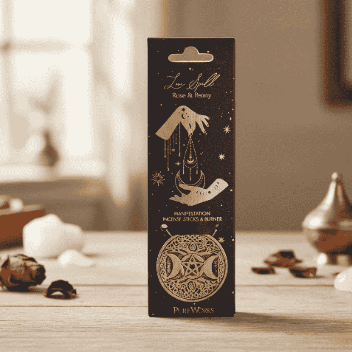 • Incluye porta incienso con diseño de luna triple