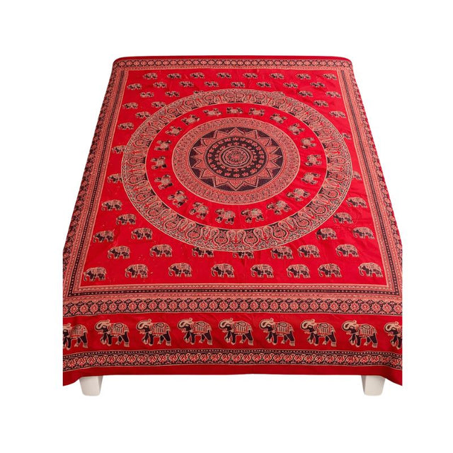 El Cubrecama 2 Plazas Rojo Elefante Real es un textil artesanal inspirado en la simbología tradicional de la India, donde el elefante representa sabiduría, poder, estabilidad y prosperidad. Su intenso tono rojo transmite energía, fuerza y calidez, aportando una atmósfera vibrante y llena de carácter al dormitorio. El diseño de elefantes ornamentales junto a patrones decorativos tradicionales refleja la riqueza cultural de los textiles indios, convirtiendo esta pieza en un elemento decorativo que aporta identidad y estilo a tu espacio de descanso. Confeccionado en 100% algodón, ofrece suavidad, frescura y resistencia, ideal para acompañar tu descanso con comodidad y personalidad.