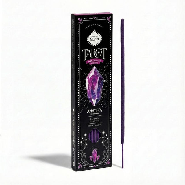 – Nota: Este sahumerio no incluye gema física. La amatista es la representación simbólica de la carta gema del Tarot, asociada a su intención energética.