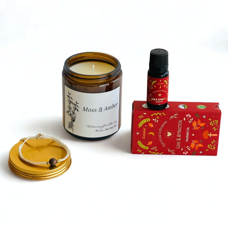 Limpia bloqueos emocionales, enciende la intención amorosa y fortalece la seguridad interior, creando un espacio íntimo de conexión y expansión.