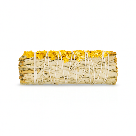 Sahúmo de Salvia Blanca con Cedro y Flor de Papel Amarilla–Naranja