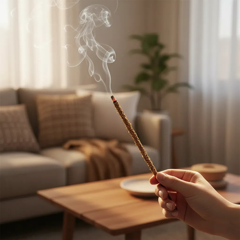 Encender sobre una superficie resistente al calor. No dejar el sahumerio encendido sin supervisión. Mantener fuera del alcance de niños y mascotas. Ventilar después de su uso y evitar inhalar el humo directamente.