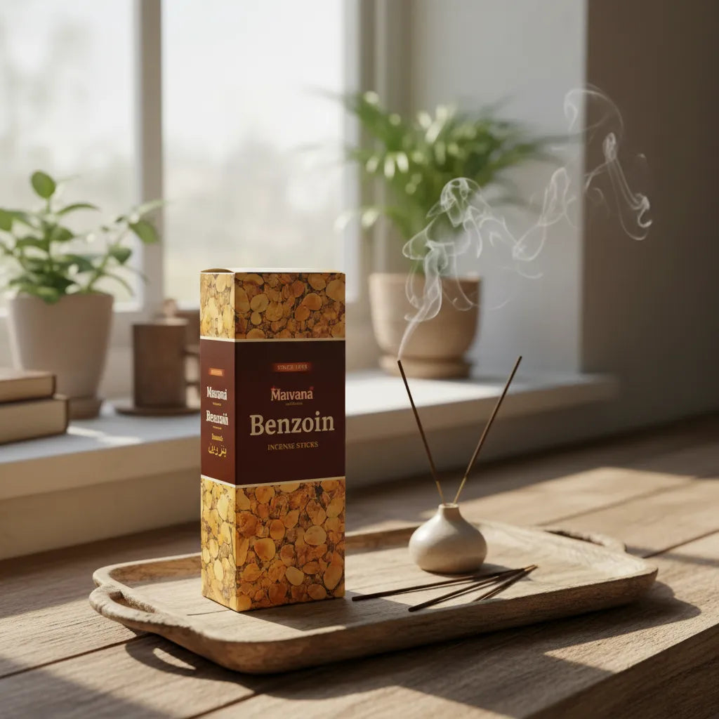 El Incienso Benzoin Mavana destaca por su fragancia cálida y resinosa, conocida por su aroma dulce y profundo que crea una atmósfera acogedora y armoniosa en los espacios.