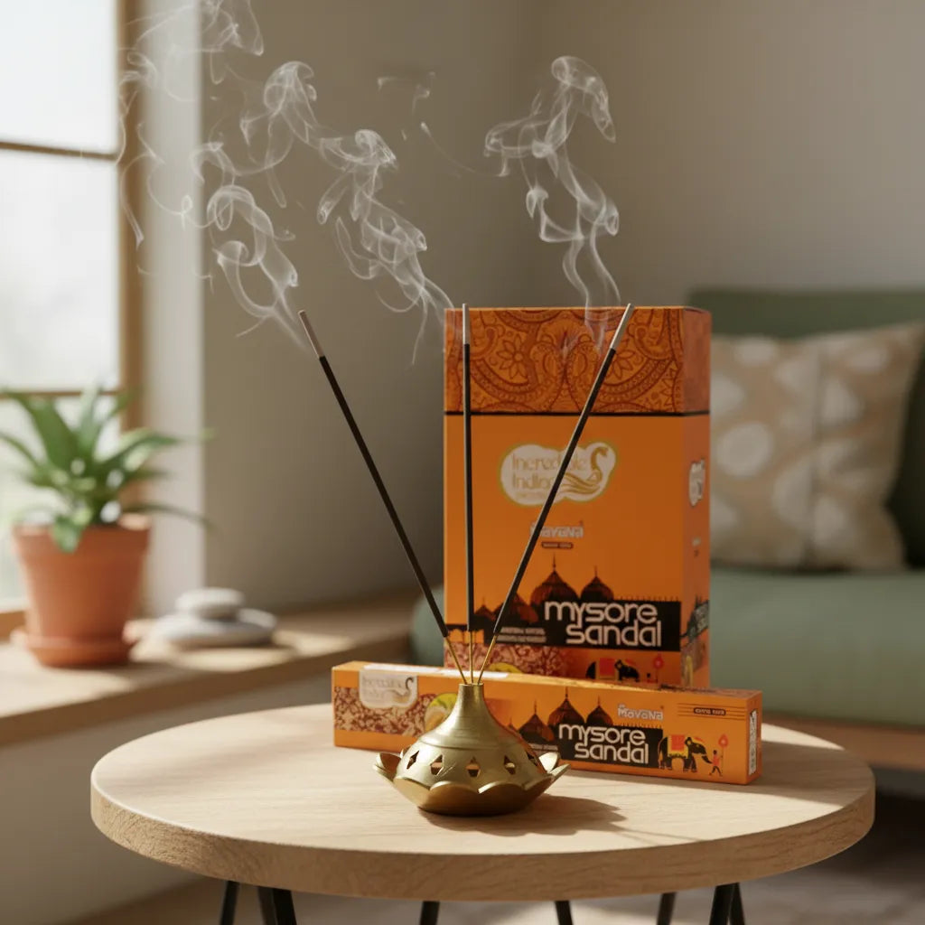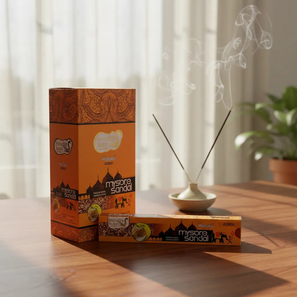 Mavana – Incienso Sándalo Mysore, una fragancia noble y espiritual que transmite serenidad, pureza y armonía, llenando tus espacios de calma, equilibrio y energía sagrada.