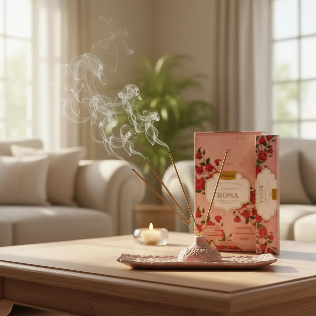 Los inciensos Romantic Rose de Tulasi son reconocidos en todo el mundo por su calidad superior, sus aromas florales y su cuidada presentación. Cada varilla es una invitación a llenar tu hogar de amor, dulzura y armonía emocional.