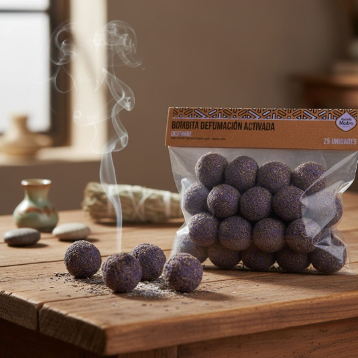 La Bomba Destrabe es una herramienta energética artesanal diseñada para liberar bloqueos, remover energías estancadas y restablecer la fluidez en los espacios. Al encenderla, su humo sagrado purifica el ambiente y facilita la apertura de caminos, ayudando a desbloquear obstáculos en la vida personal, laboral o espiritual.