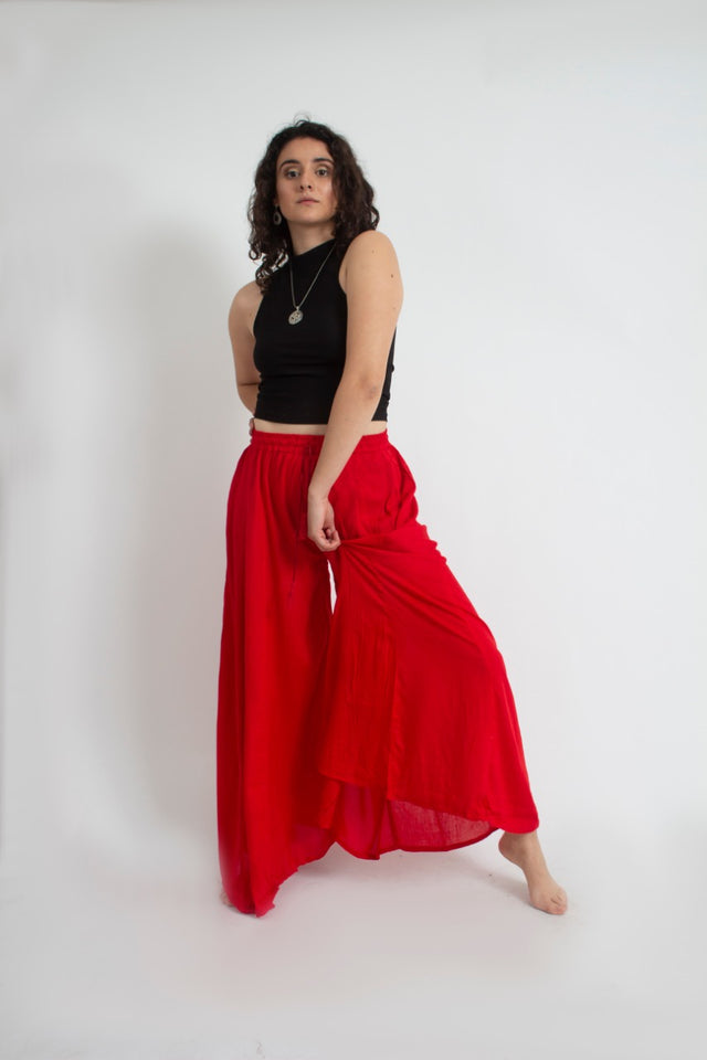 El pantalón palazzo en tono rojo es una prenda que irradia seguridad y distinción. Su silueta amplia aporta movimiento fluido y elegante, mientras que la cintura alta y elástica asegura un calce cómodo y favorecedor. Con su diseño atemporal y versátil, es perfecto para quienes buscan un look chic y con carácter.